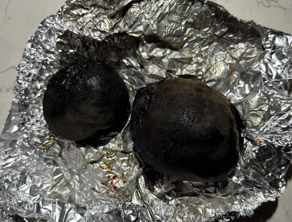 摂氏180度に温めたオーブンで、中まで火が通るまで、25分から30分程度焼きます。