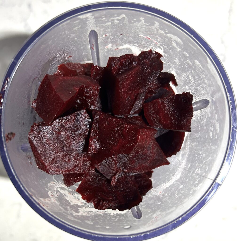 薄切りにしたビーツと少量の牛乳をミキサーに入れます。