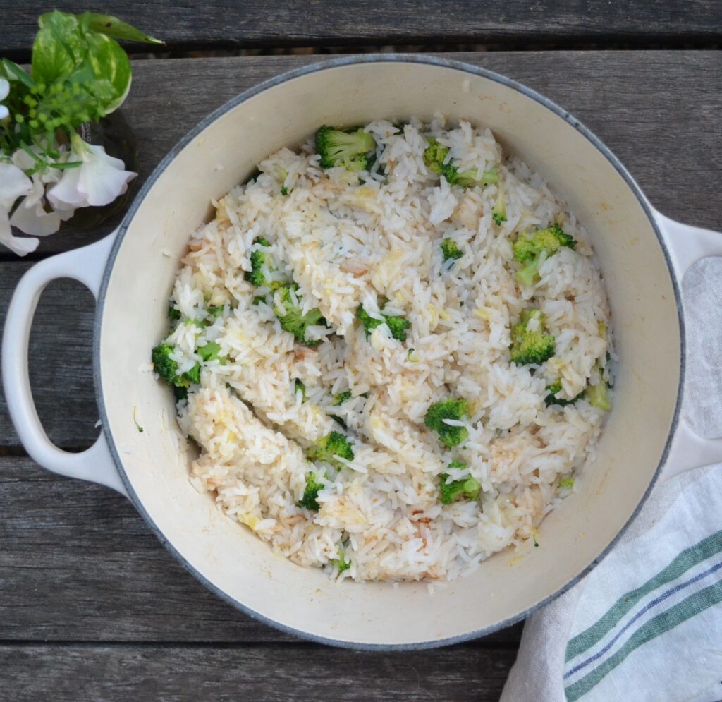 ブロッコリーとたっぷりのチーズを加えて作る、ブロッコリーライス (Broccoli Rice) です。チーズとお米、ブロッコリーの組み合わせは、キャセロールディッシュとして作られることも多く、アメリカでは定番の組み合わせです。お米を予め炊き上げてから、ブロッコリーとチーズに混ぜ合わせて作るので、とても簡単で作りやすいです。チーズがたっぷりと入っているので、ボリュームがあって、それだけでも満腹感がえられます。ボリュームのあるメインディッシュとあわせるときは、チーズを少な目に作り、軽い仕上がりにすると、サイドディッシュにも向いています。