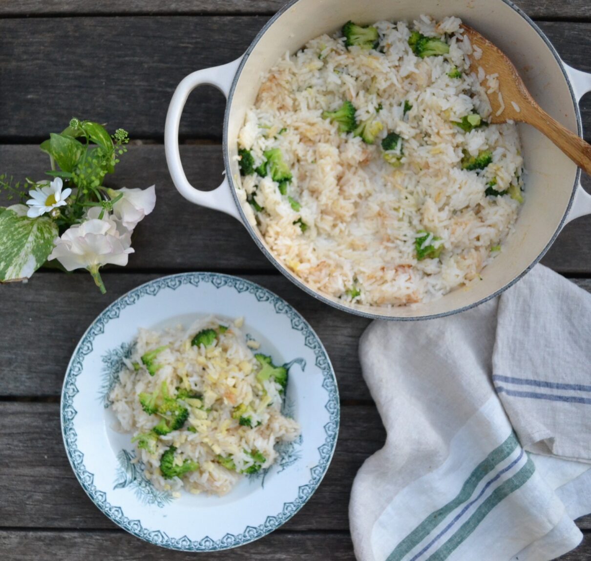 ブロッコリーとたっぷりのチーズを加えて作る、ブロッコリーライス (Broccoli Rice) です。チーズとお米、ブロッコリーの組み合わせは、キャセロールディッシュとして作られることも多く、アメリカでは定番の組み合わせです。お米を予め炊き上げてから、ブロッコリーとチーズに混ぜ合わせて作るので、とても簡単で作りやすいです。チーズがたっぷりと入っているので、ボリュームがあって、それだけでも満腹感がえられます。ボリュームのあるメインディッシュとあわせるときは、チーズを少な目に作り、軽い仕上がりにすると、サイドディッシュにも向いています。