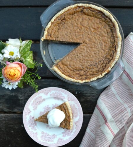 黒砂糖を加えて作るカスタードクリームに、メレンゲをトッピングしたバタースコッチパイ (butterscotch pie) です。バタースコッチパイは、インディアナ州コナーズビル (Connersville) の乳製品工場で、偶然カスタードを焦がしてしまったときに、パイにして提供されたものが、1904年に教会のレシピブックに掲載されたのが、発祥といわれています。キャラメル風味のカスタードと、ふわふわとしたメレンゲがよく合います。好みで、キャラメルソースやチョコレートを添えたりして、さらに濃厚な味わいにしても、美味しいです。