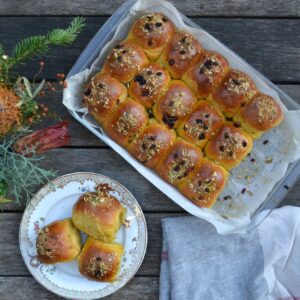 パルメジャーノチーズを加えて、チーズグリッツに、ポーチドエッグをトッピングした、シンプルな朝ごはんメニューです。グリッツはトウモロコシを挽いて粉にしたもので作るお粥のようなもので、南部の朝食では欠かせないものです。シンプルに塩とバターで味付けるのが基本的な食べ方ですが、好みのチーズを加えても美味しいです。目玉焼きやポーチドエッグなどの卵料理は、黄身を半熟状にして、グリッツと混ぜ合わせて食べます。