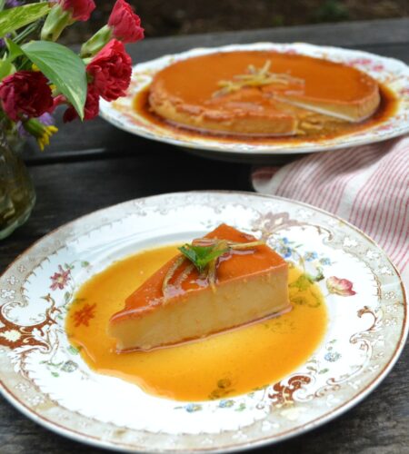 チョコレートを加えて作るチョコレートフラン (chocolate flan) です。フラン (Flan) とは、日本でも馴染みが深い「カスタードプリン」のことです。フランスやスペインなど、ラテン語圏でとてもポピュラーなデザートで、大きなケーキ型で焼くのが主流です。アメリカの一般的なフランは、クリームチーズを加えて焼くのが特徴で、アメリカでメキシカンフランと呼ばれているものは、エバミルクやコンデンスミルクを使って焼きます。このチョコレートフランは、メキシカンフランのバリエーションの一つで、エバミルクを使い、溶かしたチョコレートを生地に加えます。濃厚で口当たりがソフトなので、生チョコレートのような食感が特徴です。チョコレートが入っている分、フランとしては生地が硬めなので、作りやすく失敗が少ないレシピです。