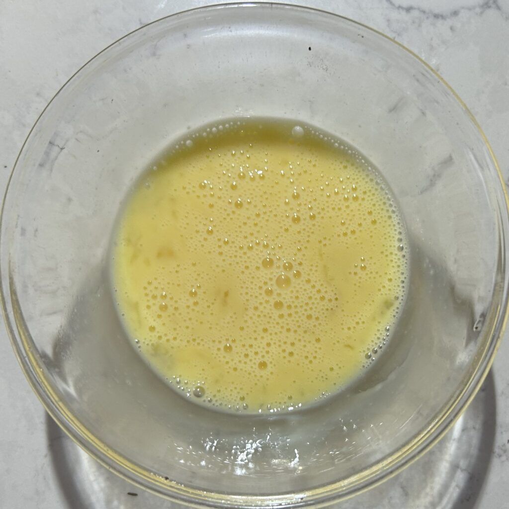 卵液を生地に加えます。