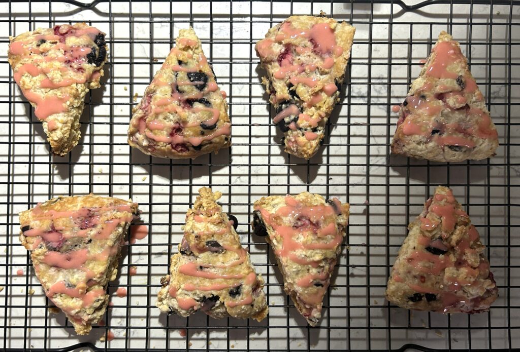 ❾焼き上がったスコーンが完全に冷めてから、アイシングを垂らすようにして、トッピングする。