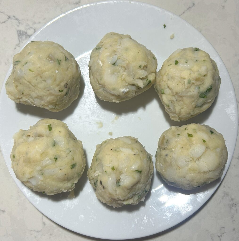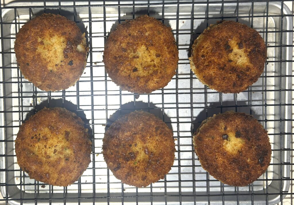 本来、英語のケーキ (cake) というのは固形状の固めたものをいうので、甘いお菓子とは限りません。とくに魚介類を使って、コロッケ状にしたものには、フィッシュケーキ (fish cake) やクラブケーキ (crab cake)など、様々なレシピがあります。見た目は揚げないコロッケのようなもので、とても食べやすく、なじみやすいと思います。今回作ったのは、鱈を使い、つなぎとしてじゃが芋を入れたフィッシュケーキです。鱈以外の、白身の魚でも、同じように作ることができます。