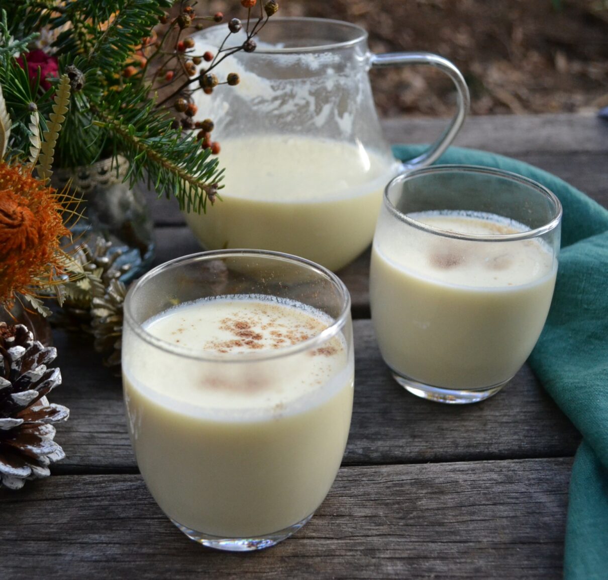 伝統的なエッグノックは、卵を加熱しないで、生のままミルクや生クリームに加えてつくります。しかし最近のレシピでは、牛乳とともに軽く加熱して作るものも多くあります。もともと、アメリカでは、卵を生で食べるという習慣はないので、加熱する作り方の方が、安心感があるようです。もともと、エッグノッグにアルコールを入れる目的は、風味付けだけではなく、アルコールの殺菌効果を利用して、腐敗を防止するためと考えられていました。好みでさらに、泡立てた卵白や生クリームを加えたりすると、より華やかにクリスマスを演出することができます。