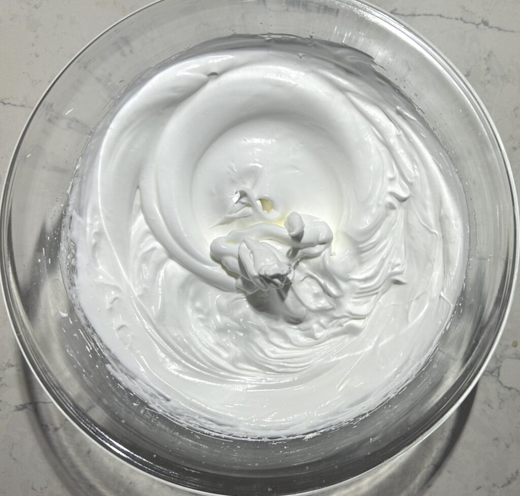 卵白をボールに入れて、白っぽくなるまで泡立てます。その後、砂糖を数回にわけながら加えて、泡立て器で攪拌して、角がたつまで、硬いメレンゲを作ります。最後に、クリームオブタータを加えて混ぜ合わせます。クリームオブタータの代わりに、お酢を少量加えて、作ることもできます。