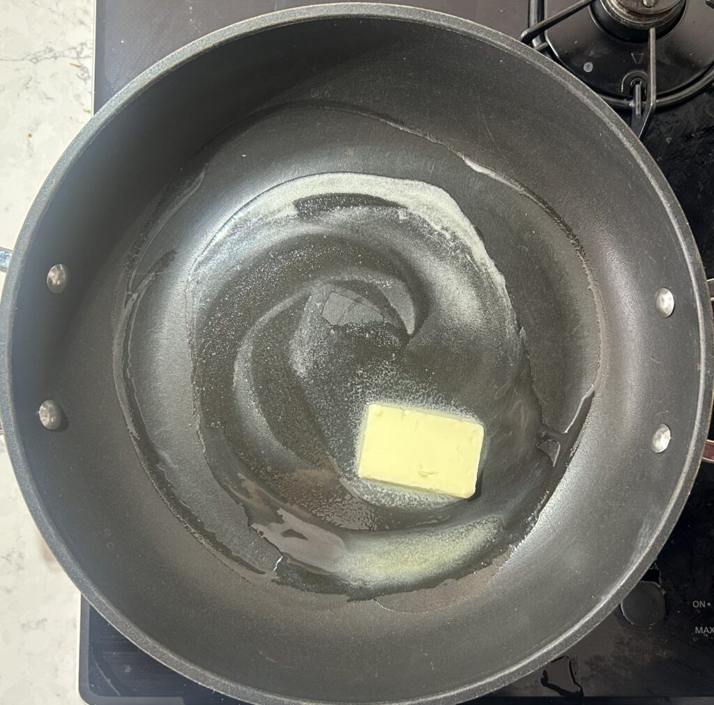 鍋にバターを入れて、中火にかけます。