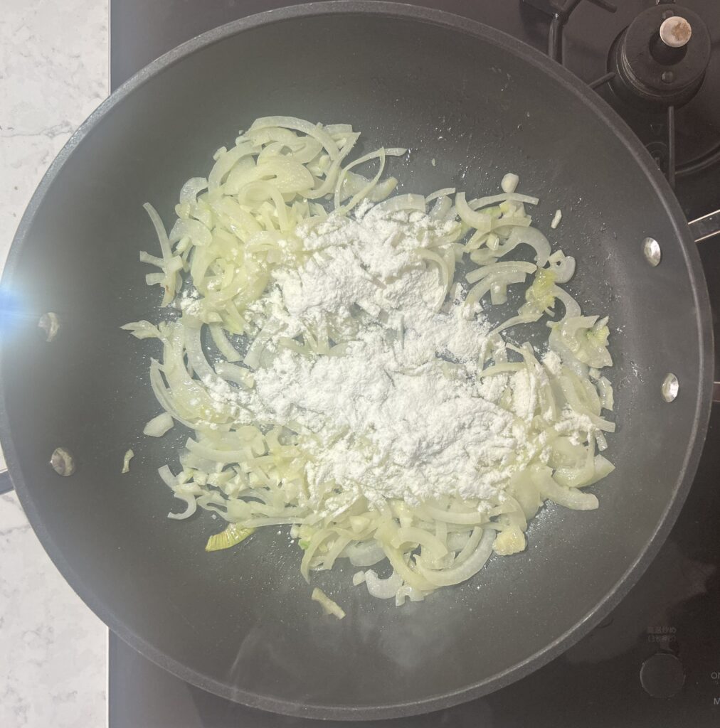 小麦粉に火が通るまで、炒めます。