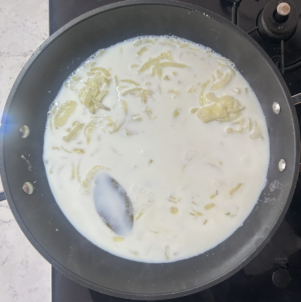 残しておいた、牛乳を加えます。
