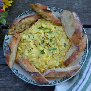卵液は、一度ボールに入れて、粗熱をとります。その後冷蔵庫に20分程度入れて、固まる直前まで冷やします。