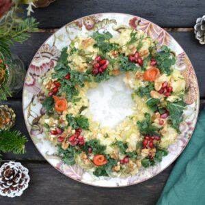 くし型に切ったライムを添えて、青ネギの微塵切りをトッピングします。