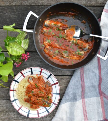 最後にイタリアンパセリの微塵切りを加えて、出来上がりです。