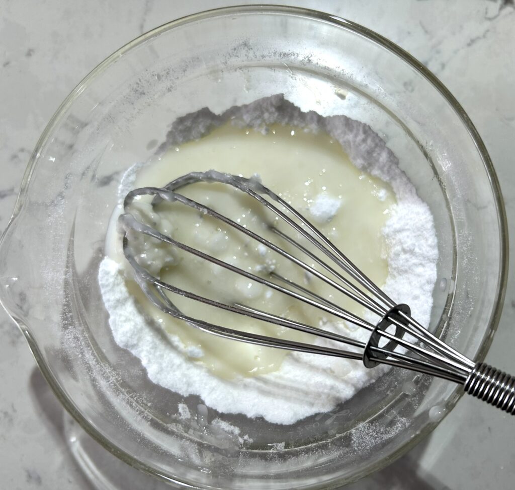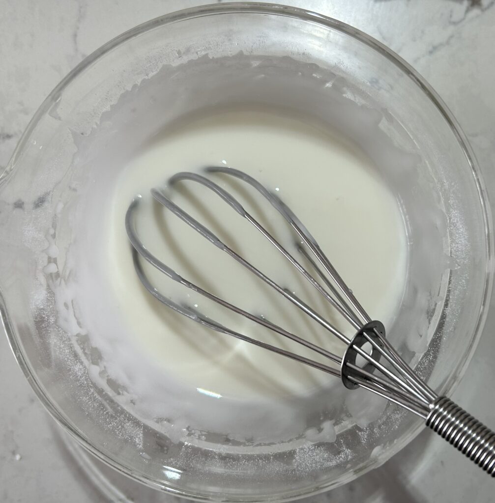 アイシングを作る。粉砂糖に牛乳を加えて、よくかき混ぜる。
