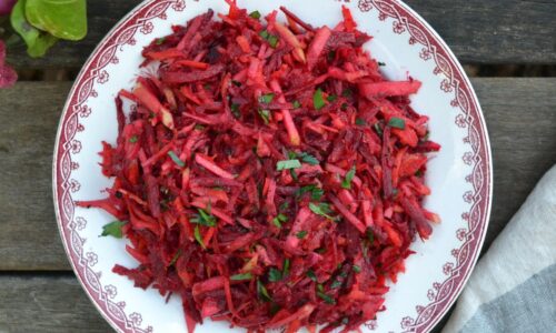ゆで卵とハーブをたっぷり加えて、ビネグレッドドレッシングで和えたポテトサラダです。アメリカのポテトサラダは、南部風ポテトサラダのように、茹で卵を加えて、マヨネーズであえたものが主流です。その一方で、ジャガイモはアメリカの主要な農産物なので、実に様々なサラダのレシピがあります。必ずしも、マヨネーズベースのものではなく、お酢を使ったドレッシング、ビネグレッドで和…