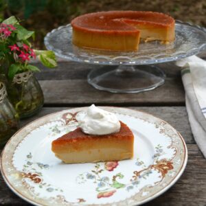 ❺皿にフレンチトーストをのせて、キャラメルソースをかける。