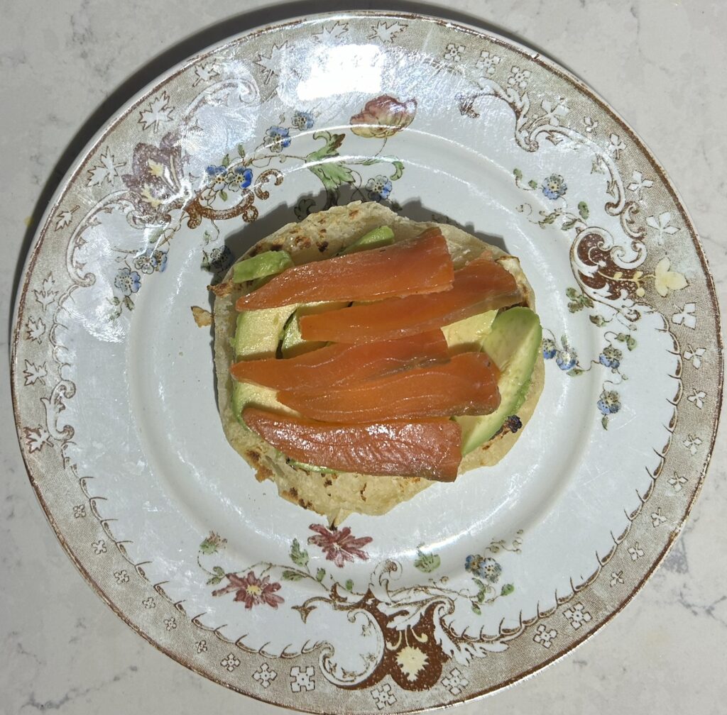 スモークサーモンをのせます。