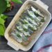 棒状にした生地を、均等な厚さに切りそろえて、耐熱容器に並べます。生地が軟らかいので、手芸用のテグスや、デンタルフロスなどを使うと上手く切れます。厚さはベーキングディッシュの大きさに合わせて調整してください。